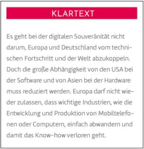 Der CEO von T-Systems, Ferri Abolhassan, fordert: „In einer Zeit, in der Daten das ‚neue Gold‘ sind, darf sich Europa nicht von von aussen regulierten Plattformen abhängig machen. Wir müssen wieder Herr unserer Daten werden!“