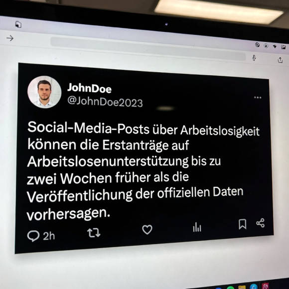 Social-Media-Posts über Arbeitslosigkeit können die Erstanträge auf Arbeitslosenunterstützung bis zu zwei Wochen früher als die Veröffentlichung der offiziellen Daten vorhersagen.