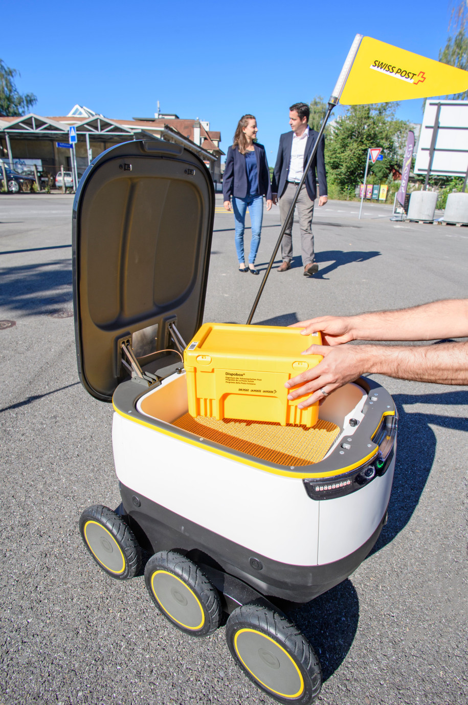 Die Schweizerische Post führt ab September 2016 Tests mit selbstfahrenden Lieferrobotern durch, um deren Eignung für die Warenzustellung auf der letzten Meile zu prüfen. Hier die Bilder dazu.