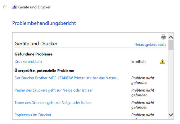 Bild 10: Im Problembehandlungsbericht informiert das System über das Resultat der automatischen Fehlersuche