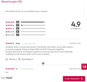 Bei der Wahl des geeigneten Druckermodells sind nicht nur Aspekte wie die Druckgeschwindigkeit wichtig, sondern auch die beigelegte Software. Ist sie einfach und verständlich zu bedienen? Lässt sie sich gut zum Scannen nutzen? Solche und ähnliche Fragen lassen sich im Vorfeld nur schwer beantworten. Eine nützliche Informationsquelle sind oft Kundenkommentare auf grossen Shopping-Portalen wie Amazon, Brack oder Galaxus, Bild 3. Viele Hersteller bieten zudem auf ihren Webseiten kostenlose Treiber- und Software-Pakete an, die Sie zum Beispiel vorher in einer virtuellen Maschine oder einer Sandbox installieren und ausprobieren können.