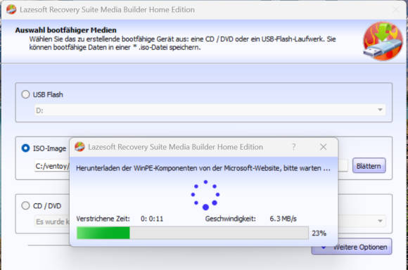 Bild 11: Die ISO-Datei für die Lazesoft Recovery Suite laden Sie über die zugehörige Windows-Software herunter