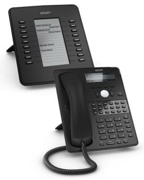snom hat mit dem Einsteiger-VoIP-Telefon D725 für SIP und dem in zwei Farben erhältlichen Erweiterungsmodul D7 zwei neue Geräte auf den Markt gebracht.