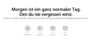 Apple will am Dienstag etwas ganz Spezielles verkünden. So heisst es seit Montagnachmittag bei Apple: ?Morgen ist ein ganz normaler Tag. Den Du nie vergessen wirst. Komm morgen wieder vorbei und erlebe eine grossartige Ankündigung von iTunes.? Um 16.00 Uhr mitteleuropäische Zeit soll dann das Geheimnis gelüftet werden. Das Wall Street Journal gibt vor zu wissen, um was geht.