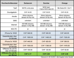 Schweizer Tarife für iPhone 5s und 5c im Telscout-Vergleich