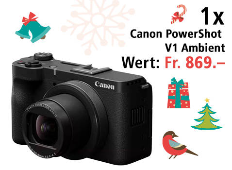 Im Adventskalender 2025 verlosen die Kollegen von PCtipp auch dieses Jahr wieder tolle Preise. Dazu gehört die Kamera Canon PowerShot V1 im Wert von 869 Franken.