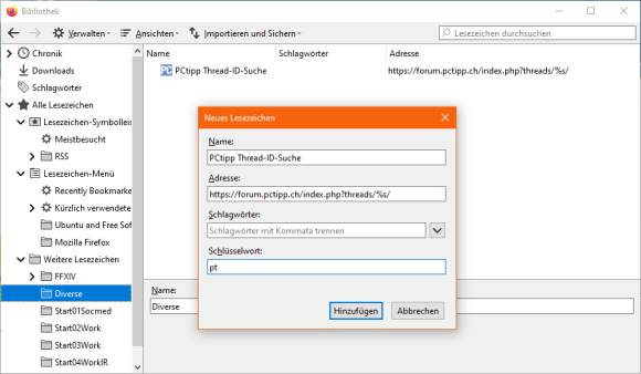 Mozilla Firefox bietet eine nützliche Schlüsselwort-Funktion. Die hilft Ihnen auch beim Aktualisieren alter Bookmarks – zum Beispiel aus dem PCtipp-Forum.