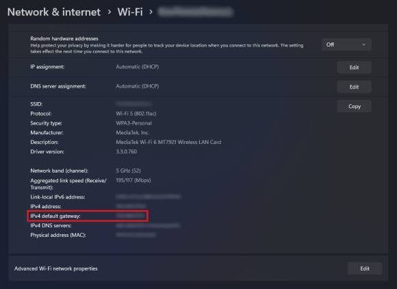 Bild 1: Windows kann mittlerweile auch die Router-IP anzeigen, hier IPv4 default gateway genannt