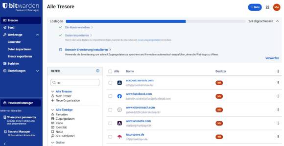 Bild 4: Der Einstieg bei Bitwarden ist leicht: Konto anlegen, Passwörter importieren und die Browsererweiterung installieren