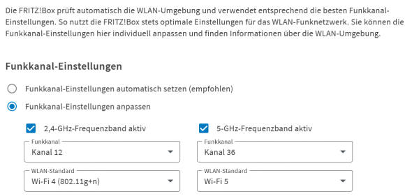 Alternativ kann auch bereits der Wechsel des WLAN-Kanals eine deutliche Verbesserung bringen. Wenn viele Funknetze sich einen Kanal teilen, kommt es ebenfalls zu erhöhten Latenzen und wiederholten Paketverlusten. Auch können Mikrowellen oder Babyphones den Empfang stören. Sie sollten daher auf einen weniger intensiv genutzten Kanal wechseln. Das kann eine Fritz!Box im Prinzip automatisch durchführen, es ist aber auch manuell möglich.