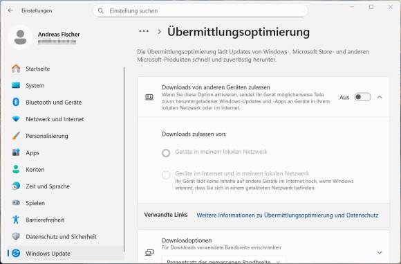 Bild 3: Schalten Sie in den Windows-Einstellungen die Übermittlungsoptimierung ab, um Bandbreite zu sparen