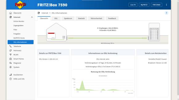 Bild 9: Die Fritz!Box zeigt gleich auf der Startseite die aktuelle Internetgeschwindigkeit