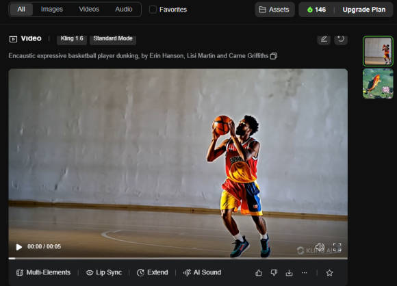 Klicken Sie unter Video Generation auf Text to Video, um einen Film anhand eines Prompts generieren zu lassen. Das geht nur mit Kling 1.6. Ein Prompt könnte lauten: «Basketball, dunk, expressive basketball player dunking the ball, in the style of Erin Hanson, Lisi Martin and Carne Griffiths». Wenn Ihnen nichts einfällt, können Sie per Mausklick DeepSeek damit beauftragen, einen Prompt für Sie zu erstellen. Optional fügen Sie einen negativen Prompt hinzu – mit alldem, was das Video nicht zeigen soll, Bild 6.