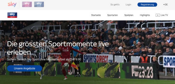 Der Sportgigant Sky ist auch in der Schweiz mit einem breiten Angebot vertreten. Ebendiese Breite ist auch eine grosse Stärke des Senders. Das gilt sowohl für die gesendeten Sportarten als auch für die Sendekanäle. Sky ist per TV-Anschluss und Internet verfügbar, was den Sender deutlich flexibler macht als andere Anbieter, Bild 5.