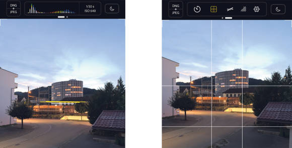 Doch die Fotografie in der Dämmerung bildet nur einen Pfeiler der App. Die Reflect-Removal-Funktion kann direkt nach der Aufnahme störende Reflexionen entfernen, die zum Beispiel bei Fensterscheiben auftreten. Daneben bietet die App Einstellungen für den Fokus, die Verschlusszeit, ISO, Belichtungskorrektur oder den Weissabgleich. Ausser der Aufnahme als JPEG werden auch Rohbilder als DNG in der vollen Auflösung gespeichert. Adobe plant bereits für die kommenden Versionen; etwa mit der Integration von verschiedenen Looks, einem verbesserten Porträt-Modus sowie Panorama- und Videofunktionen.
