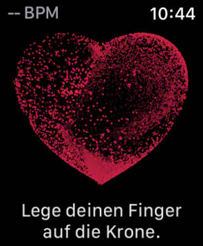Um die aktuelle Herzfrequenz selbst zu messen, öffnen Sie an der Apple Watch die App Herzfrequenz. Halten Sie ein paar Sekunden still, bis das Resultat verkündet wird, Bild 5. Doch darüber hinaus gehört die kontinuierliche Messung der Herzfrequenz im Hintergrund zu den wichtigsten Analysen der Apple Watch. Sie nutzt ihren optischen Herzsensor, um den Puls rund um die Uhr in unregelmässigen Abständen zu messen. Eine Warnung wird jedoch erst ausgelöst, wenn der Puls während 10 Minuten ausserordentlich hoch oder tief ist, ohne dass eine körperliche Aktivität verzeichnet wird.