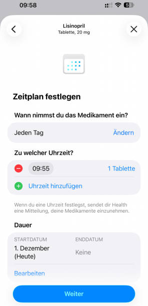 Das waren die Funktionen, die essenziell für die Überwachung der eigenen Befindlichkeit sind und im Zweifelsfall Leben retten können. Doch darüber hinaus warten unzählige weitere Hilfen auf ihre Entdeckung. Dazu zählt etwa ein ausgefuchstes System, das an die Einnahme der Medikamente erinnert (ab Series 4, SE und Ultra 1): Es protokolliert die Einnahme und hilft bei der visuellen Orientierung bei mehreren Medikamenten. Medikamente werden automatisch auf kritische Wechselwirkungen überprüft und im Zweifelsfall wird auf potenzielle Risiken hingewiesen. Damit eignet sich die Funktion, um betagteren Menschen aus dem eigenen Umfeld mit einer Apple Watch das Leben und die Sicherheit zu verbessern, Bild 8.