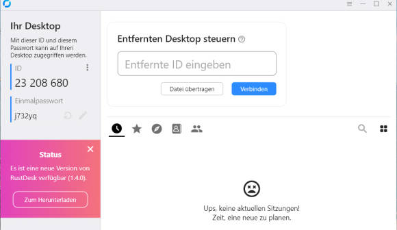 Bild 11: Die Oberfläche von Rustdesk erinnert an TeamViewer, die Funktionalität ebenfalls