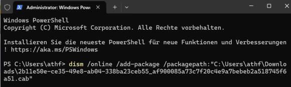 Bild 8: Ältere Patches im seltenen CAB-Format installieren Sie mithilfe des DISM-Befehls