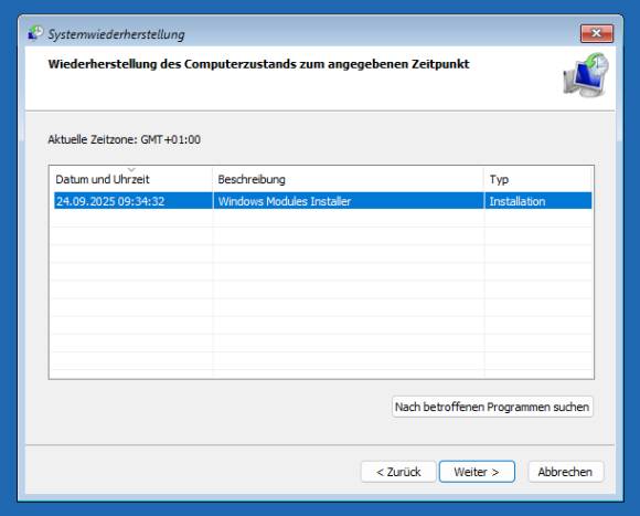 Bild 12: Mithilfe Ihres Reparatur-Sticks kehren Sie zu einem früheren Wiederherstellungspunkt zurück