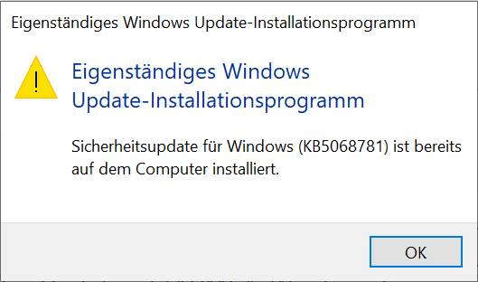 Bild 7: Bei der manuellen Installation einzelner Updates prüft Windows erst, ob das Update überhaupt fehlt