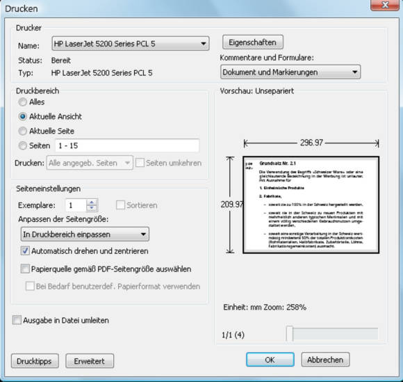 Adobe Reader: PDF-Ausschnitt gezoomt ausdrucken