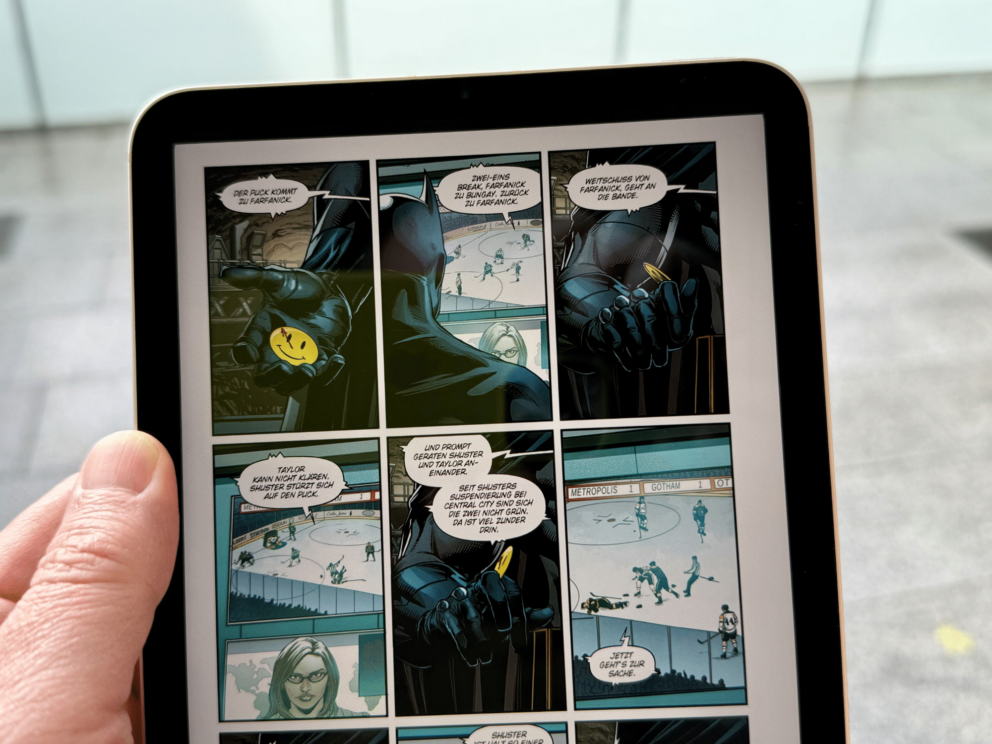 Denn mit Abmessungen von 19,5×13,5 Zentimetern und einem Gewicht von 297 Gramm (ohne Hülle) erinnert das iPad mini fast an einen eBook-Reader. Und tatsächlich: ein Kindle Colorsoft wiegt zwar mit 219 Gramm nicht viel weniger, bietet aber nur einen Bruchteil der Möglichkeiten. Auch das iPad mini lässt sich bequem in einer Hand halten, wobei sich nach einiger Zeit die harten Kanten des Gehäuses bemerkbar machen. Dafür besticht es durch ein hervorragendes LC-Display mit 2266×1488 Pixeln, was einer Pixeldichte von 326 ppi entspricht.