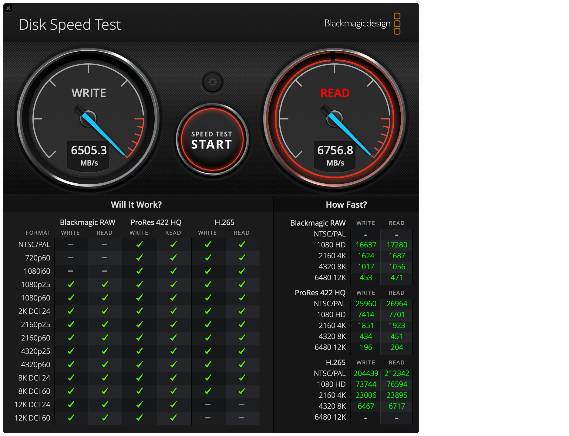 Auch die SSD liefert hervorragende Werte: Wer mit seinem eigenen Rechner vergleichen will: Die kostenlose Software Disk Speed Test von Blackmagic bescheinigt ihr mehr als 6,5 GB pro Sekunde beim Lesen und Schreiben. Und das macht Freude: bei der Videoverarbeitung, aber natürlich auch beim Bewegen von schwergewichtigen Dateien.