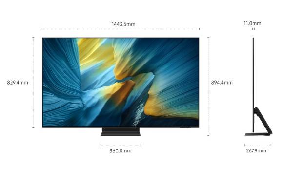 Details: 65 Zoll, OLED-TV mit Quantum Dot (4K, 3840 x 2160, 120 Hz), One-Connect-Box (Slim), 4 x HDMI 2.1, 3 x USB 2.0, One UI Tizen, 4.2.2-CH (70 Watt), div. KI-Funktionen, Object Tracking Sound +, Wi-Fi/Bluetooth, max. 156 Watt