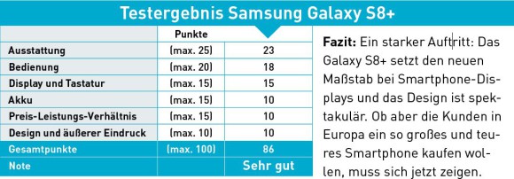 Richtig schnell ist der hauseigene Exynos-Prozessor, der im Antutu-Benchmark rund 170.000 Punkte erreicht. Damit hängt er jedes andere Android-Gerät ab und ist fast so rasant wie das iPhone 7. Dass der Arbeitsspeicher mit 4 GB nicht allzu üppig für ein Highend-Modell ist, spielt für das Tempo offenbar keine negative Rolle. Auch die 64 GB für Daten sind nur Durchschnitt.